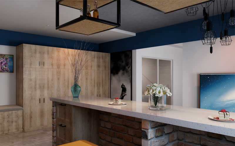 現代簡約風的裝修設計風格非常適合本案的業主的干脆利落的個性。這種風格的家裝設計講究的就是實用性為主,一些繁雜的裝飾都可以拋開不用,化繁為簡的將室內的顏色搭配、原材料、燈光照明等等搭配物件一切從簡,通過設計師運用一系列的巧妙的設計搭配,展現出了很好地視覺效果,打造出一種簡而不凡的當下流行的家居風格。