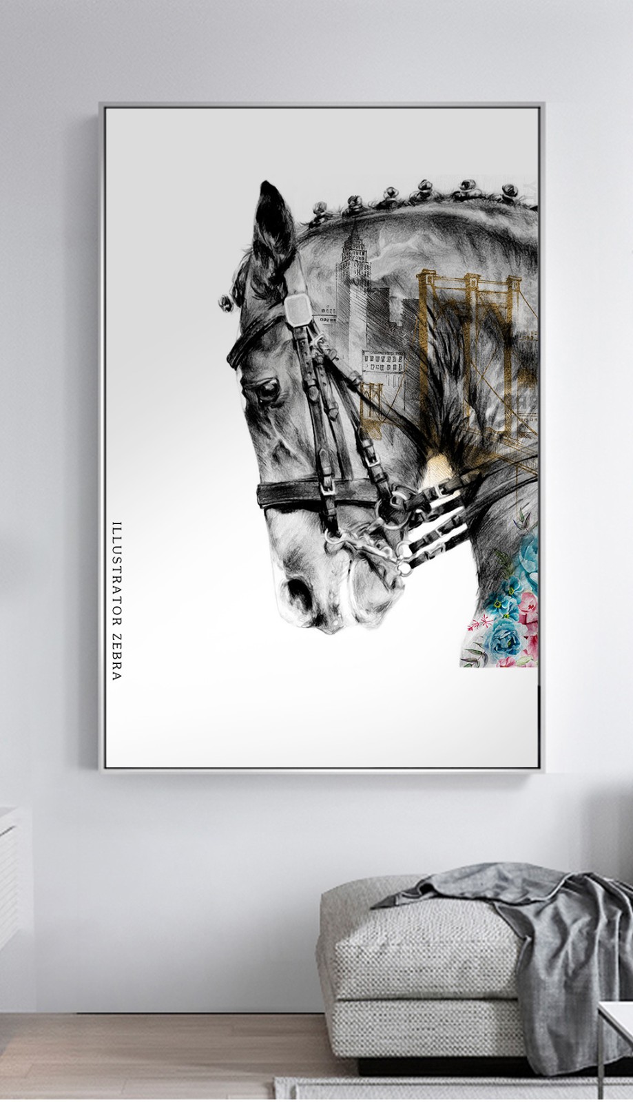 現(xiàn)代簡約客廳掛畫臥室藝術(shù)裝飾畫手繪油畫 馬頭