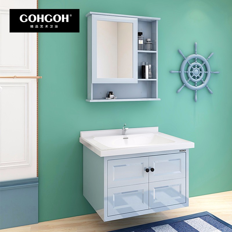 【GOHGOH】懸掛式一體陶瓷盆浴室柜 現(xiàn)代簡約PVC浴室柜BL-1708